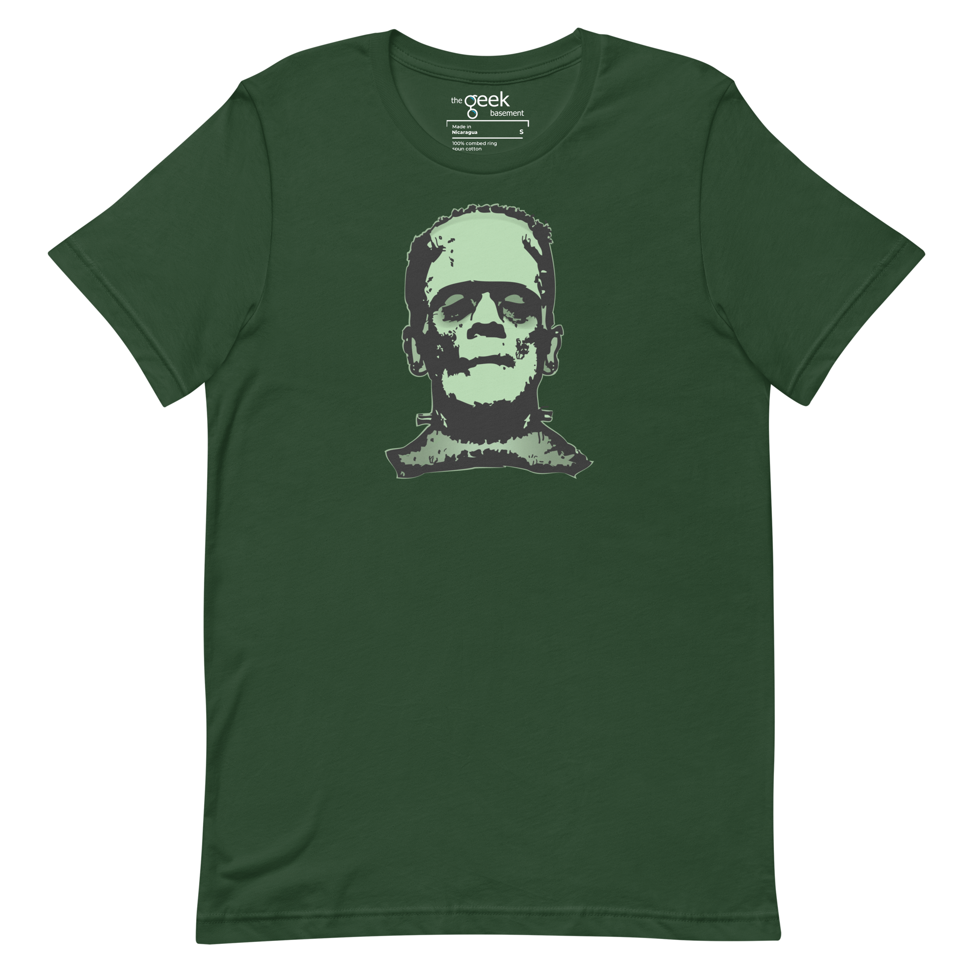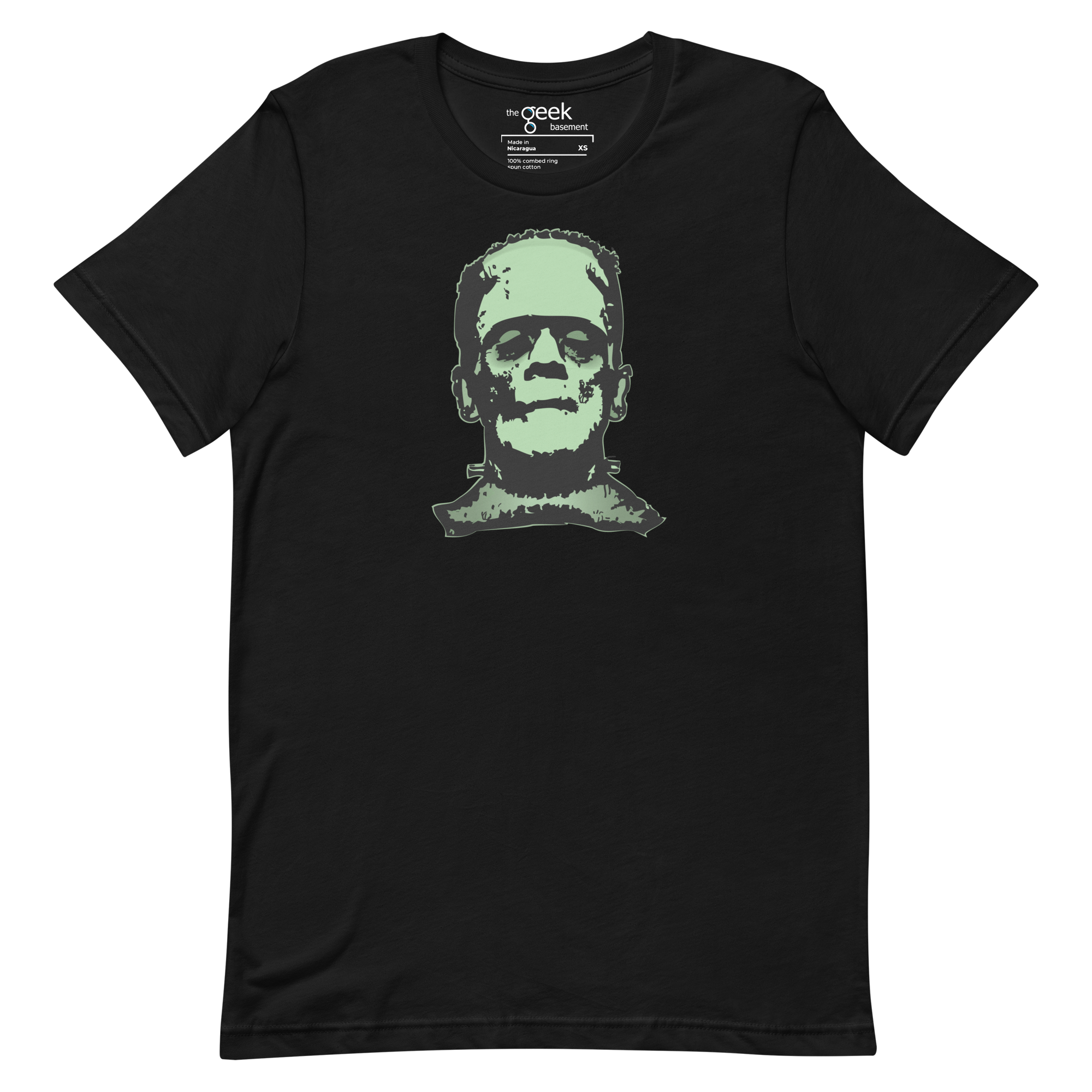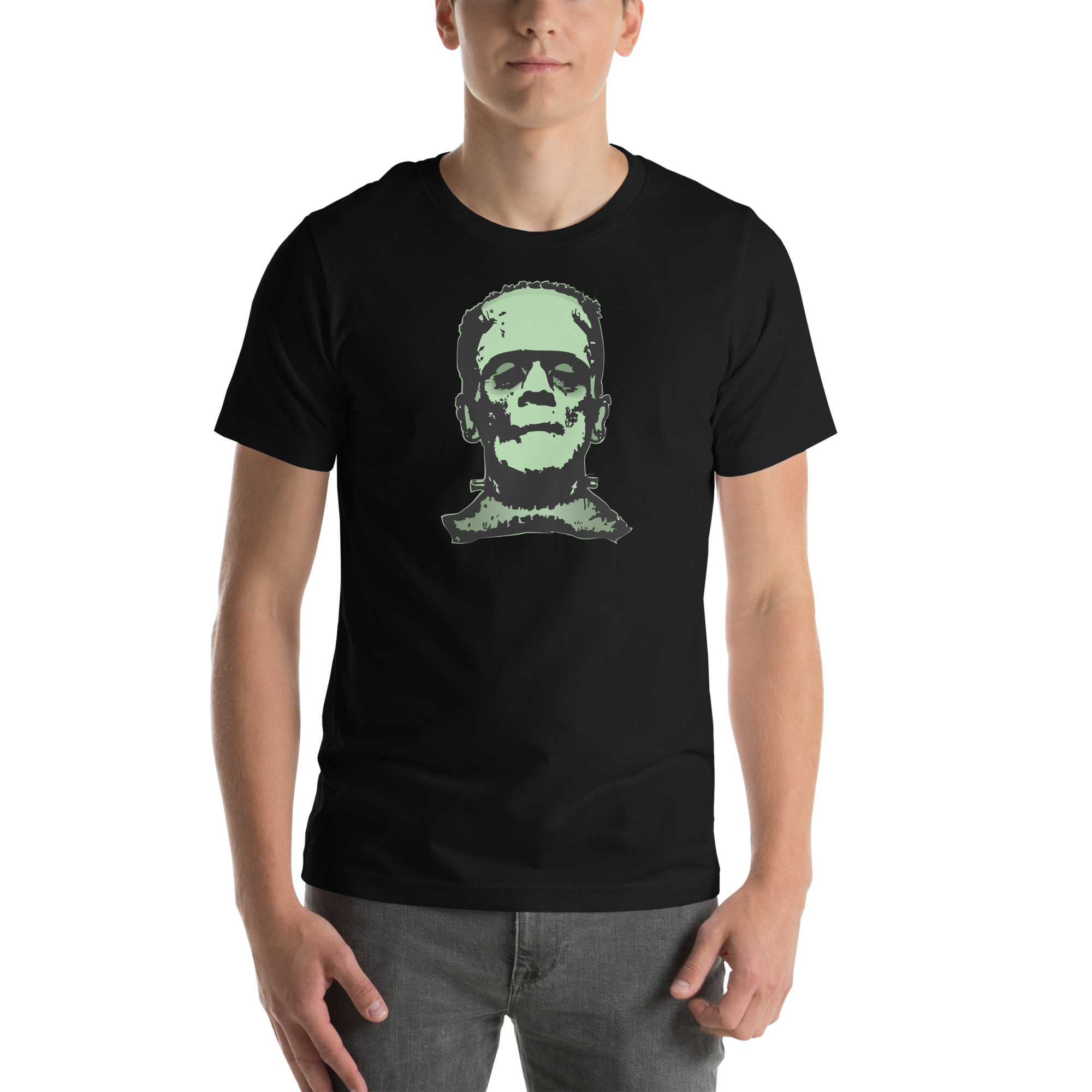 It’s Frankenstein’s (or more accurately, “Frankenstein’s monster’s”) head on a T-Shirt! This shirt is soft, comfortable and made from 100% Cotton.