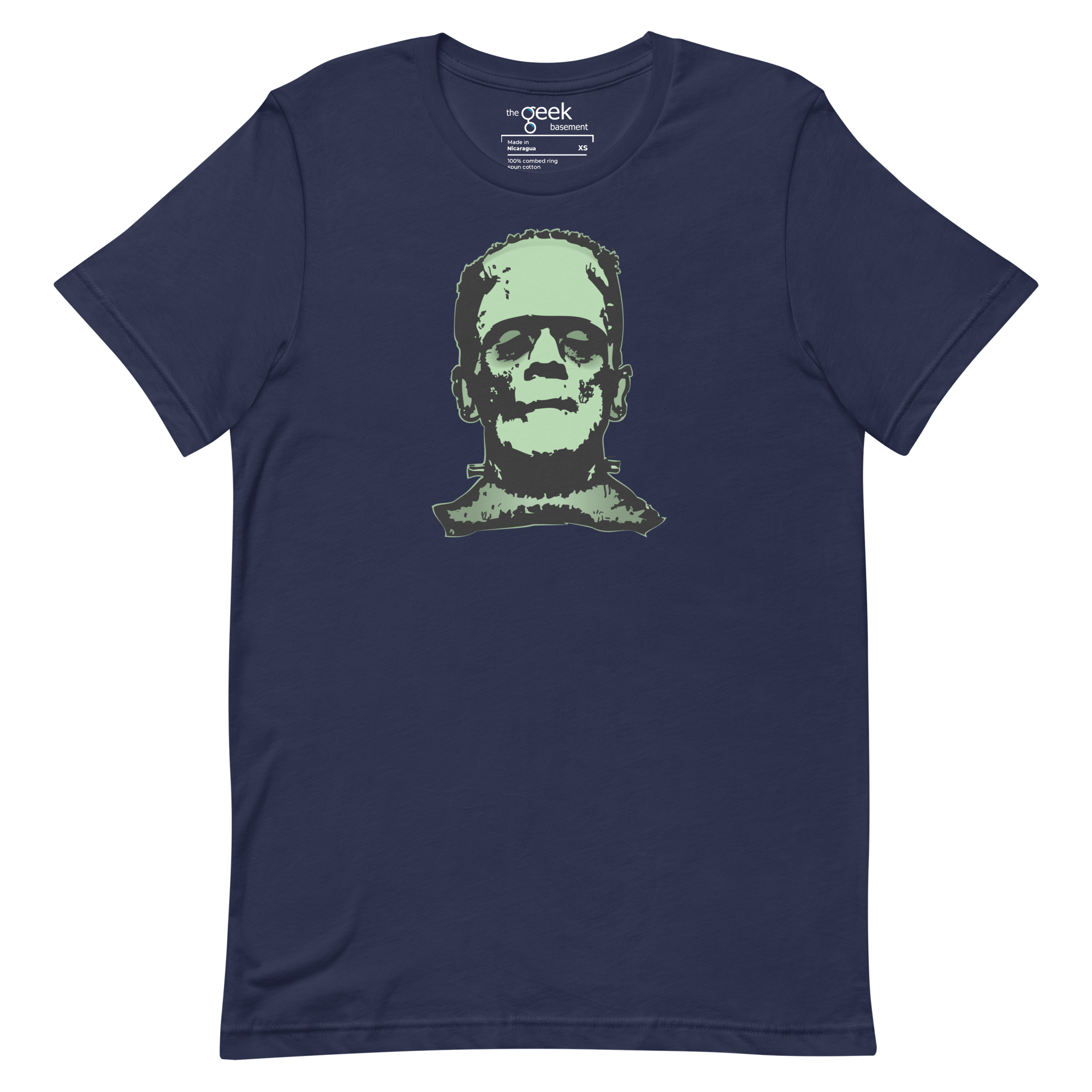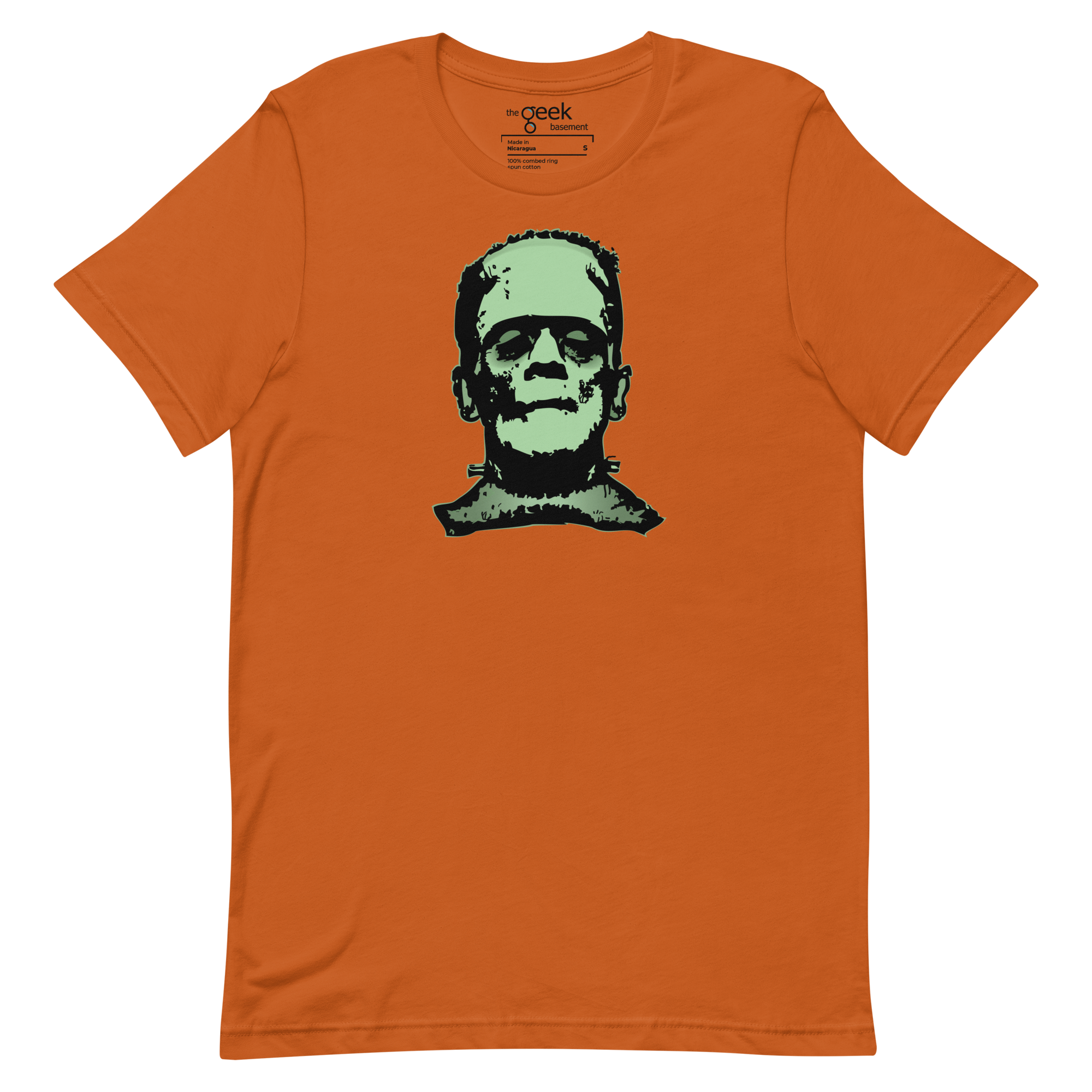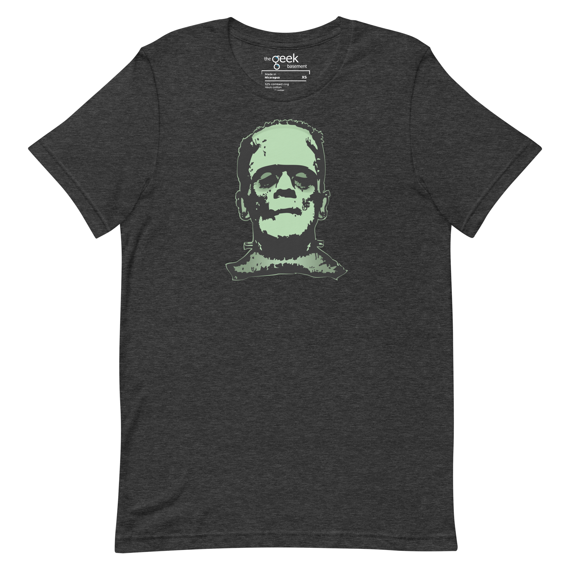 It’s Frankenstein’s (or more accurately, “Frankenstein’s monster’s”) head on a T-Shirt! This shirt is soft, comfortable and made from 100% Cotton.