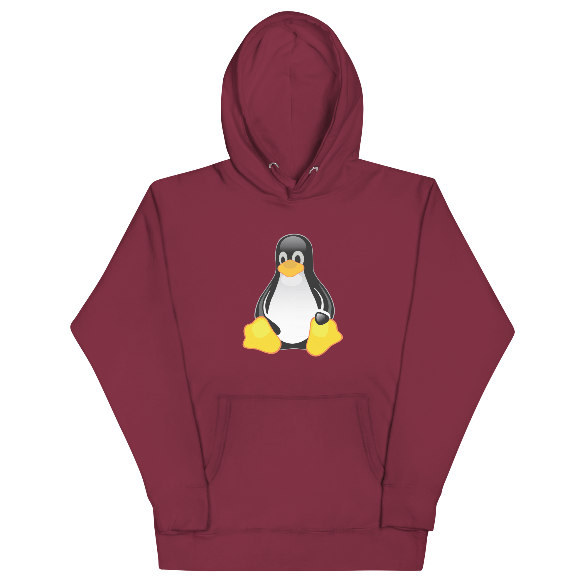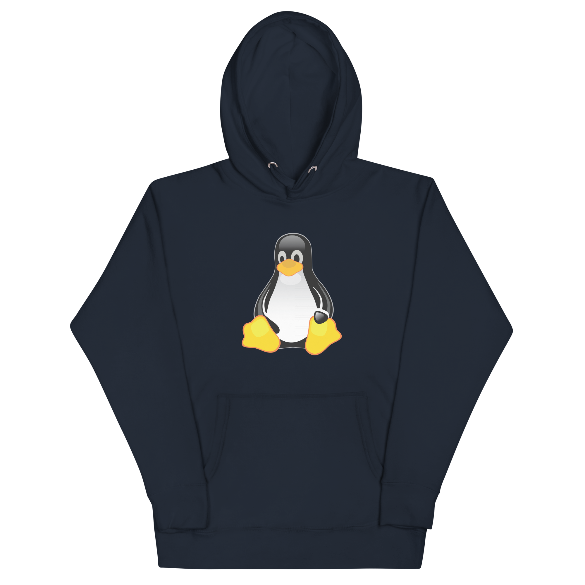 Linux hoodie featuring the classic Linux penguin. This medium-weight hoodie is soft, comfortable and warm but breathable. Great for long coding sessions, gaming or just lounging around.