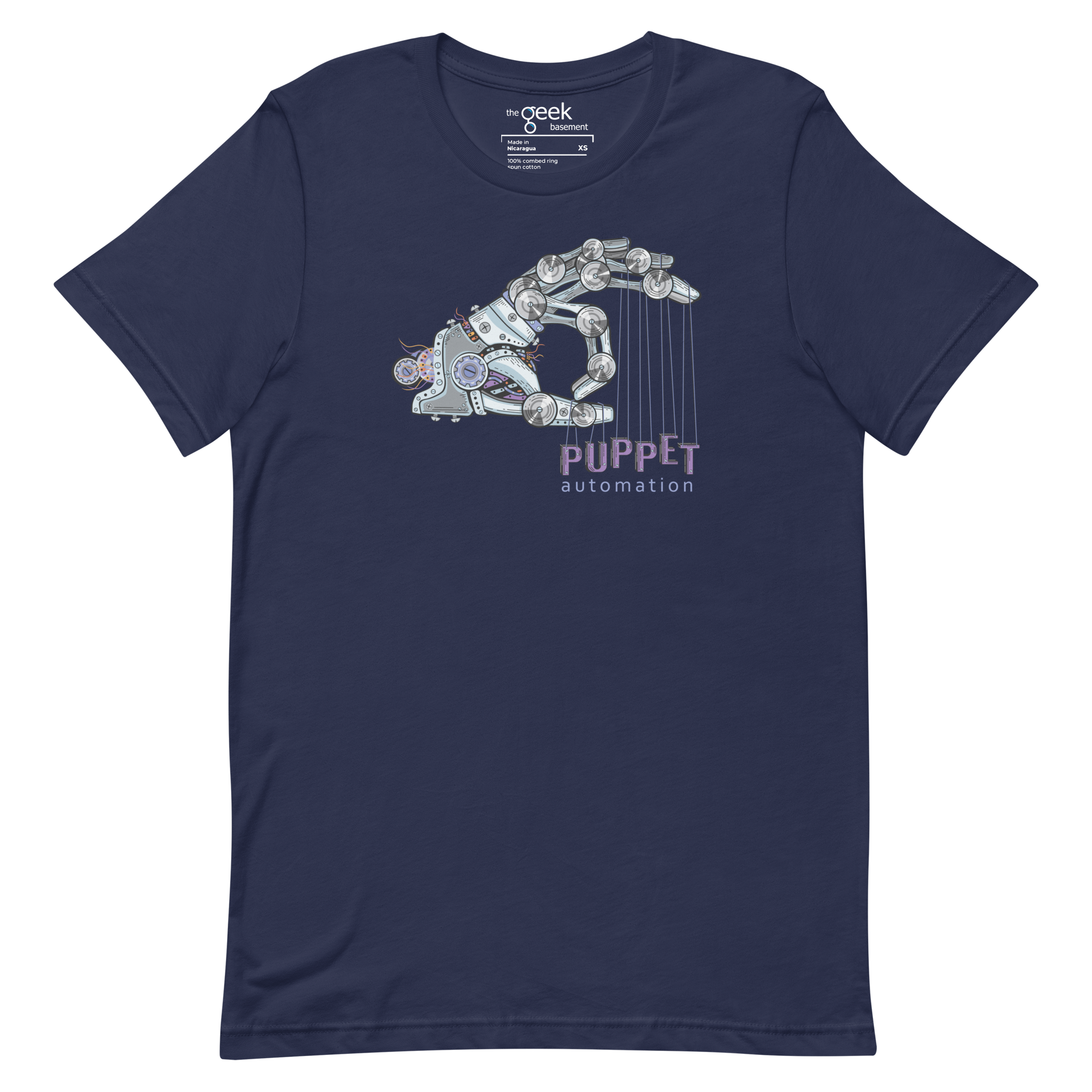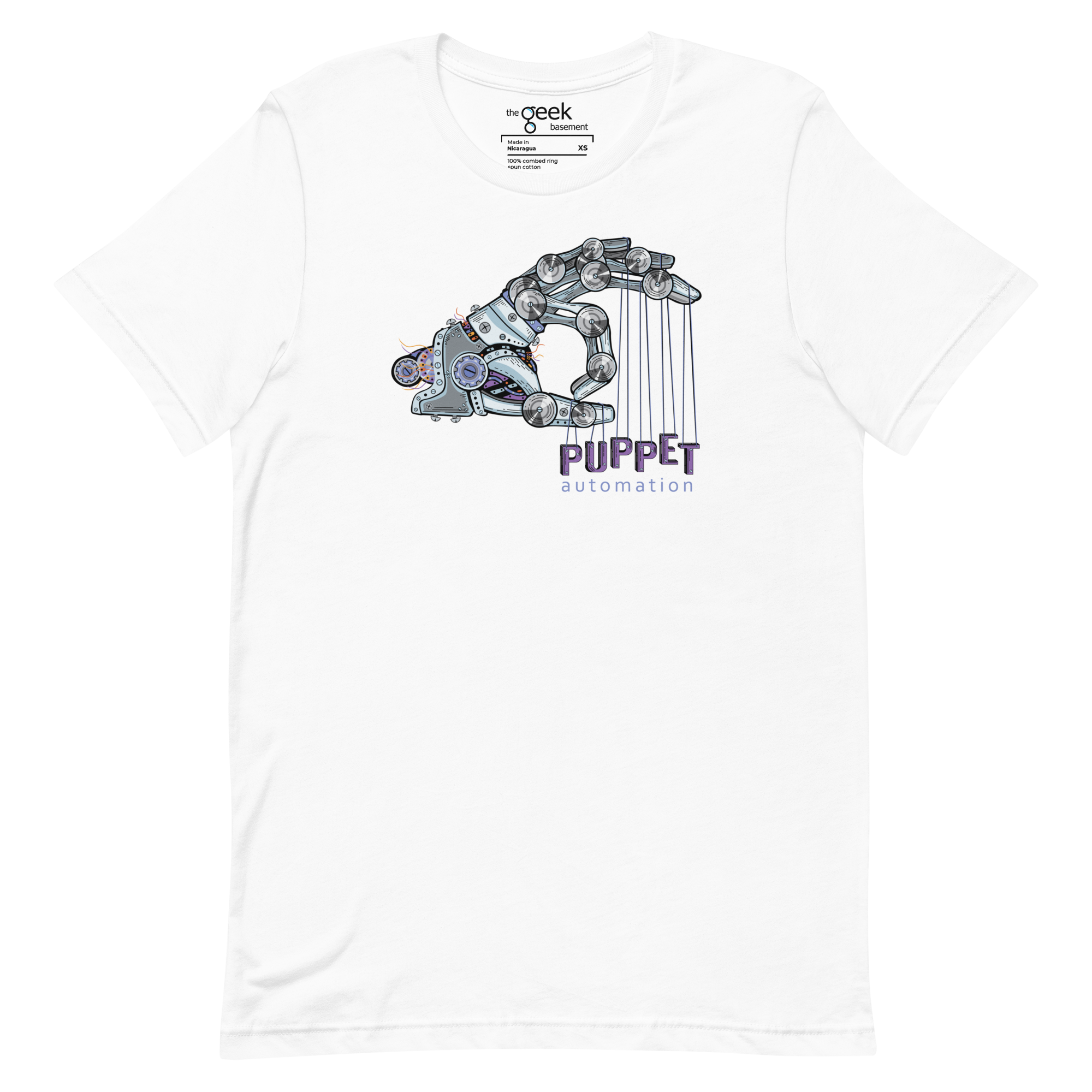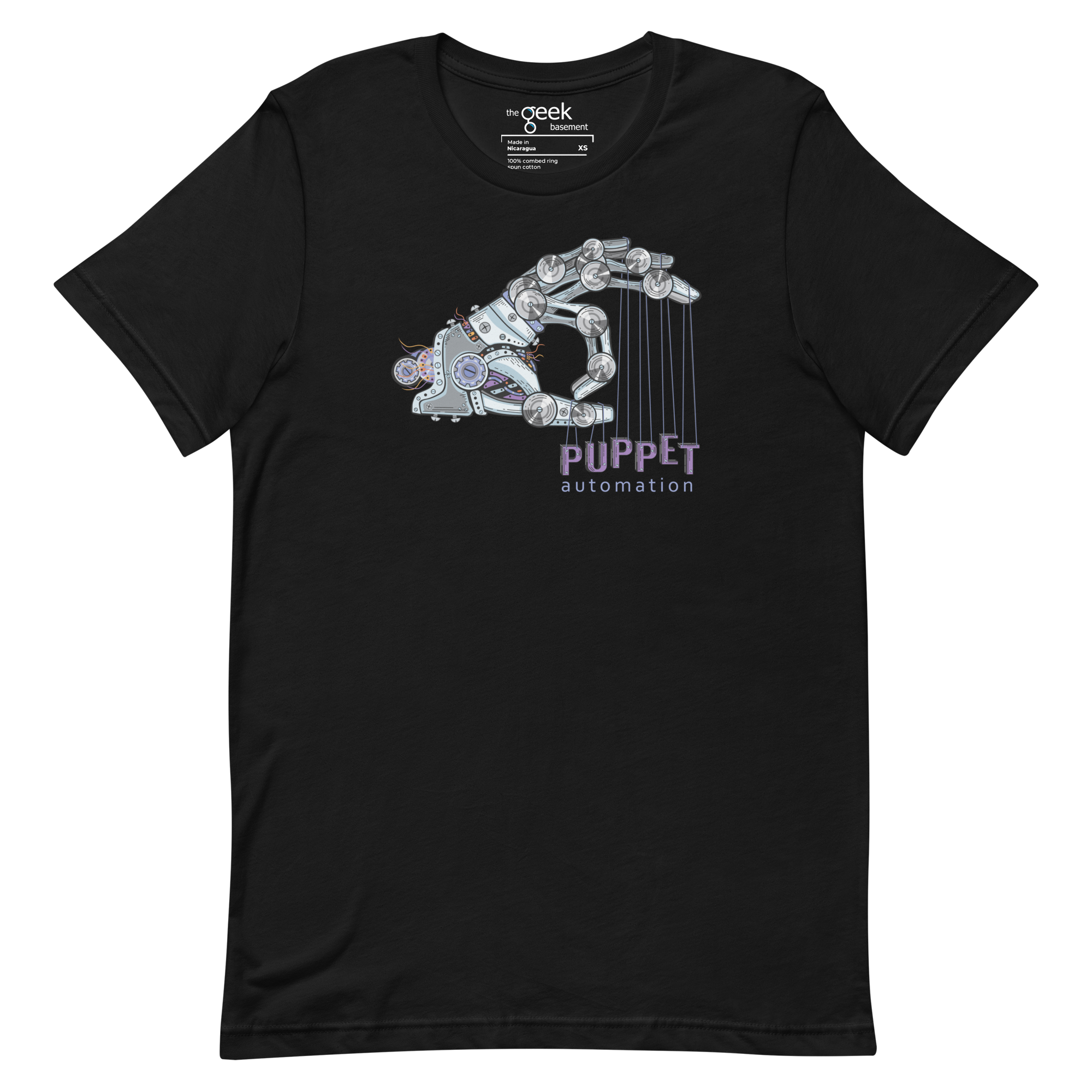 Control the chaos with Puppet. This shirt features a robotic hand holding the word “Puppet” on strings, symbolizing your mastery over automation and infrastructure management. It’s a nod to the precision, power, and control you wield over systems—no more manual labor, just automated perfection.