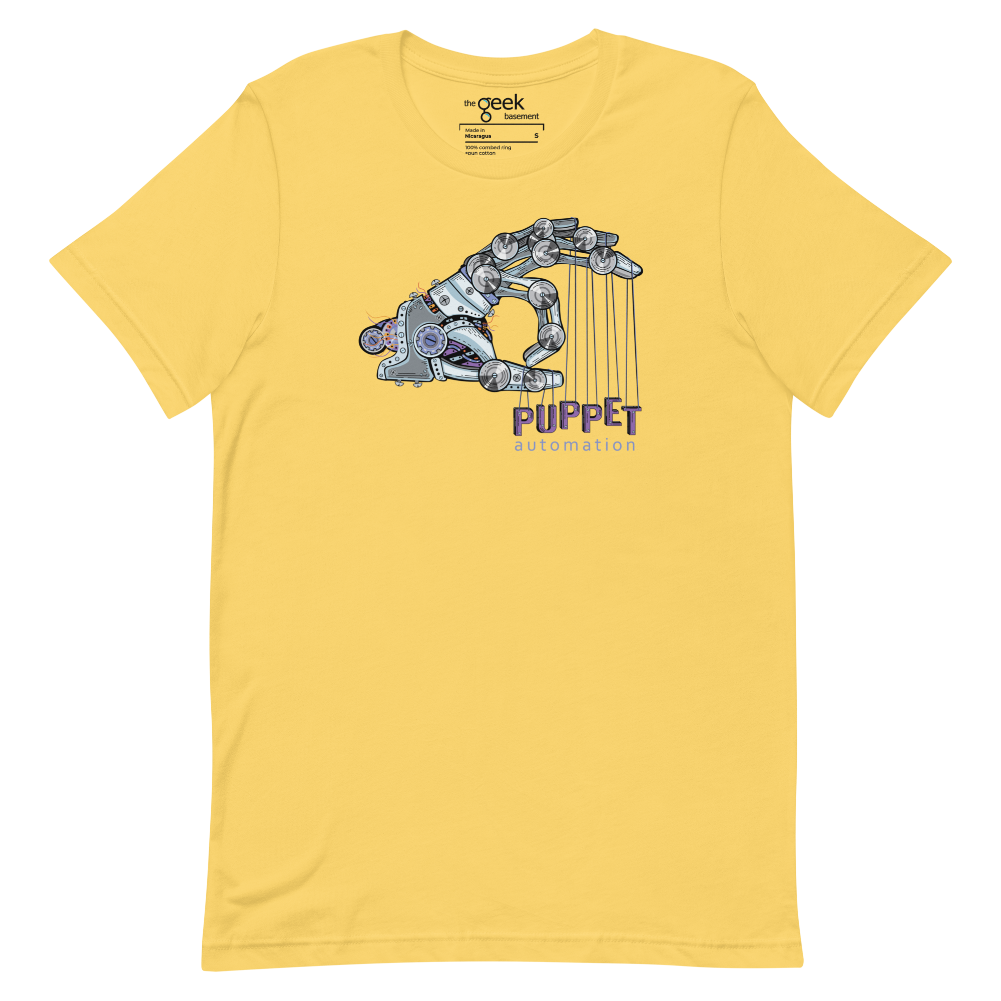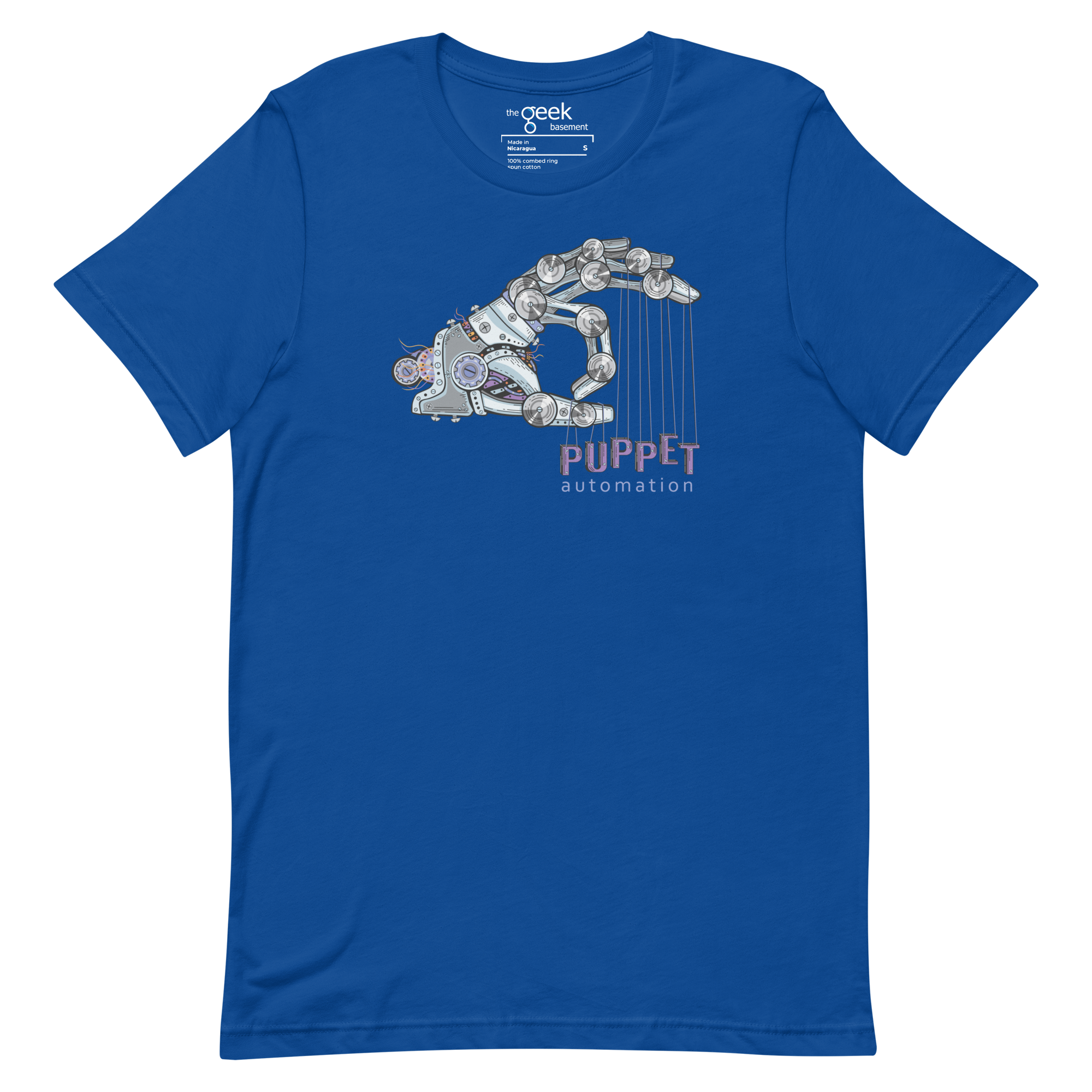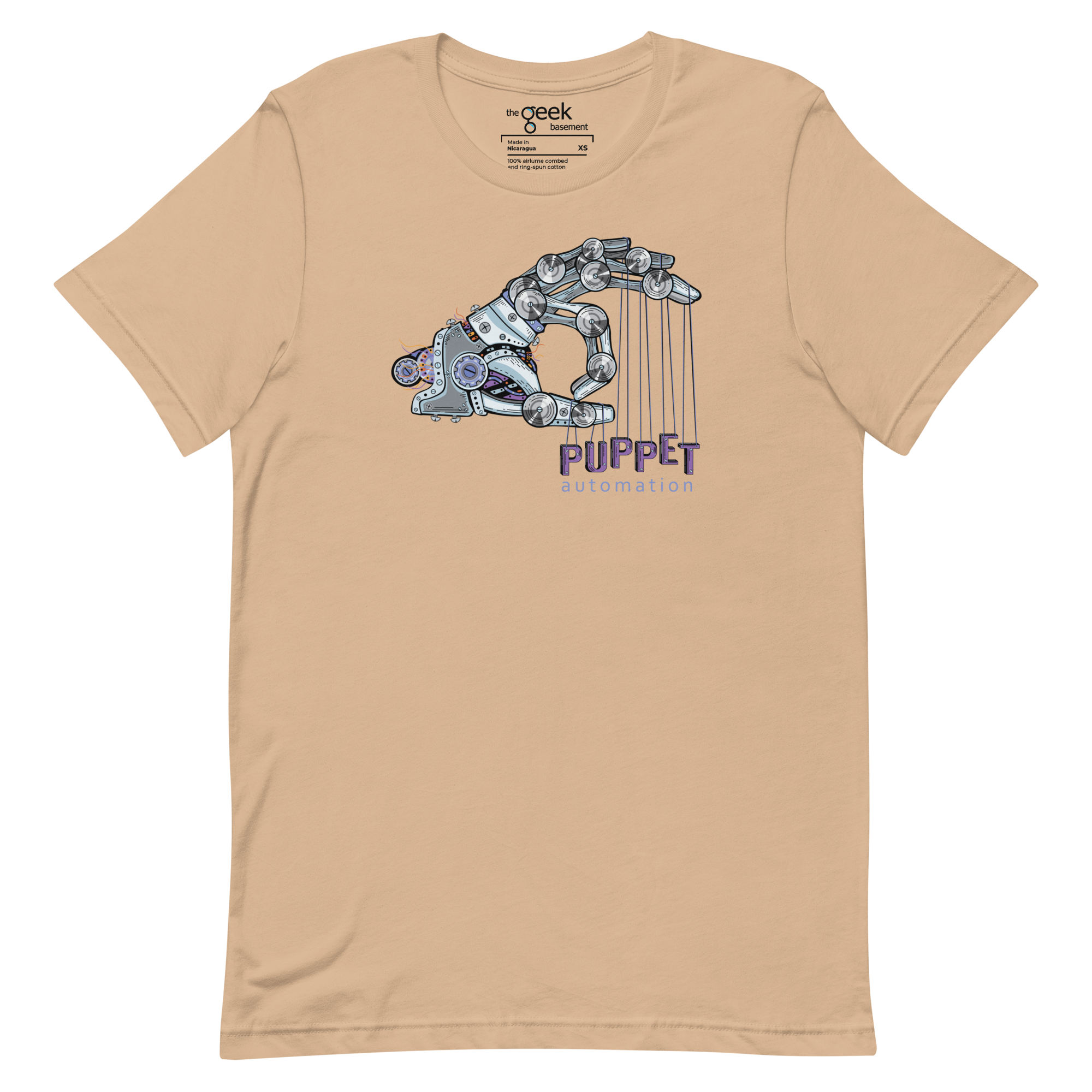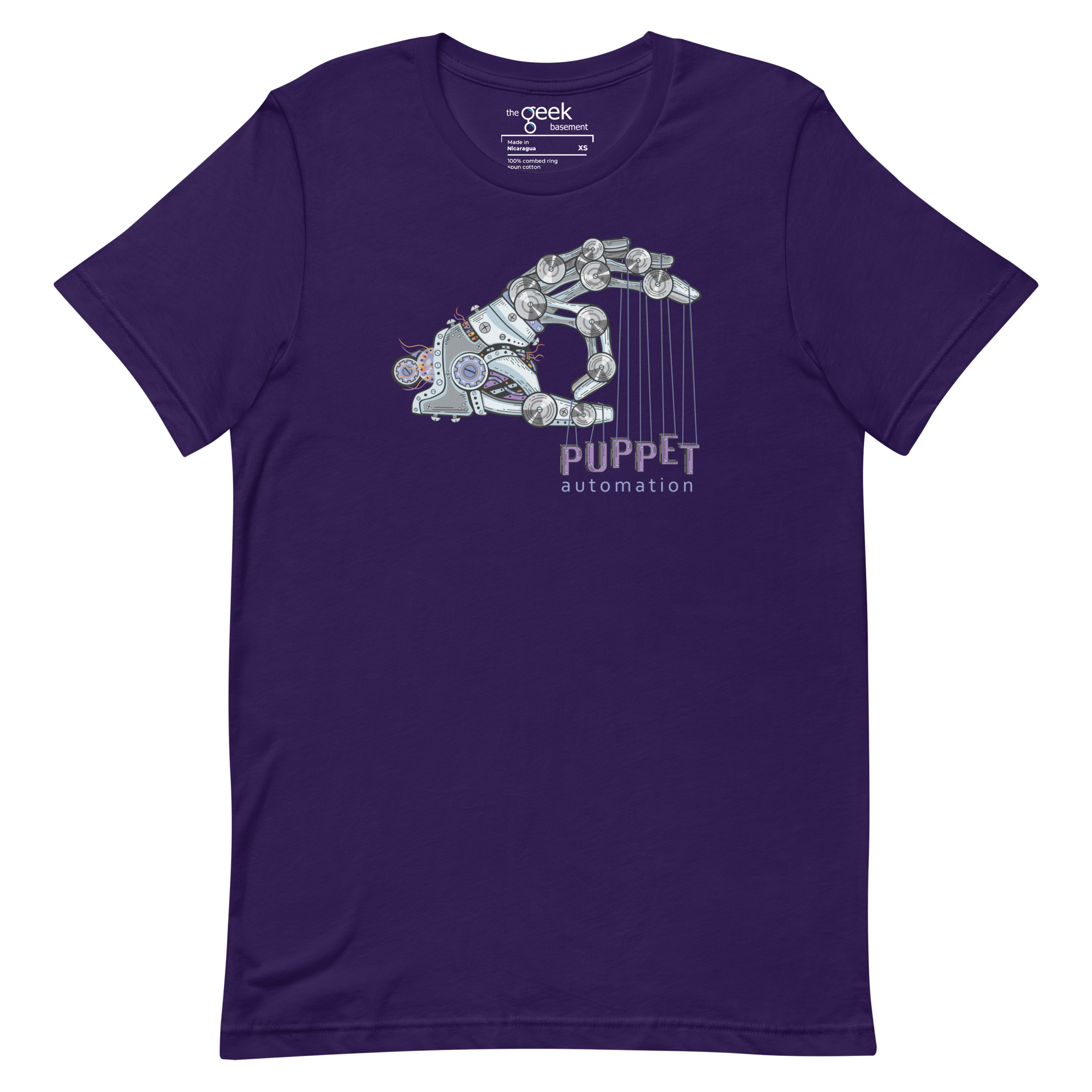 Control the chaos with Puppet. This shirt features a robotic hand holding the word “Puppet” on strings, symbolizing your mastery over automation and infrastructure management. It’s a nod to the precision, power, and control you wield over systems—no more manual labor, just automated perfection.